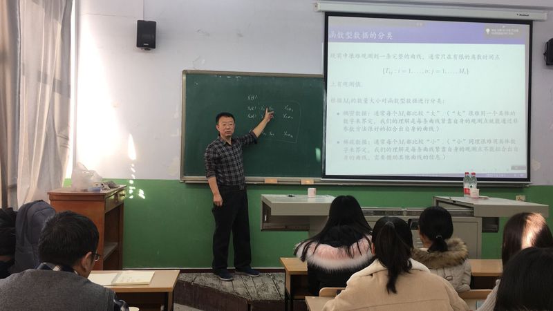 报告会中,张日权教授结合他多年的学习,教学和研究经验,向同学们介绍了函数型数据的概念。其中,张日权老师通过举心电图例子引入一维数据,又分别举例介绍二维及多维的概念。现实中很难观测到一条完整的曲线,只观测到的是集散的点。面板数据,纵向数据是函数型数据的特殊情况。函数型数据分成稠密数据和稀疏数据,并举出男女孩身高增长图作为实例。首先,对函数型数据分情况进行估计,并运用主成分方法对无限维进行降维成有限维,得出函数型主成分得分。接下来,张老师又对函数型数据进行回归模型的估计,分成四大类进行讲解,并对模型进行检验。最后,十大博彩网站排行榜