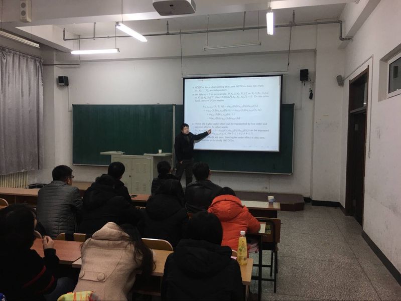 潘光明老师就dimension在时间序列中平稳性的检验的重要性开始报告,分平稳和非平稳两种情况展开讨论,从低维到高维进行。针对理论和实践后得到的结果进行了详细的讲解。潘老师在回答同学问题的基础上,也鼓励同学们努力学习,坚持脚踏实地的学习理论知识。