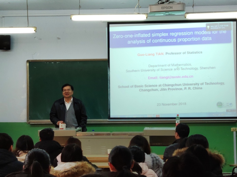 报告会中,田国梁老师结合他多年的学习,教学和研究经验,向同学们介绍了成分数据的概念。此外,田国梁老师通过举的例子建立0-1膨胀的单纯形回归模型,分析了比例数据。最后,十大博彩网站排行榜