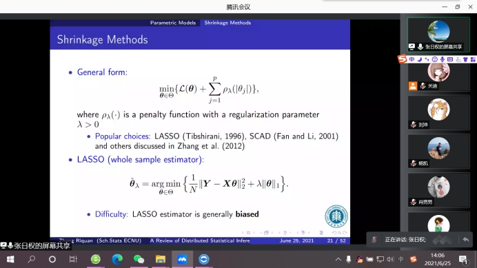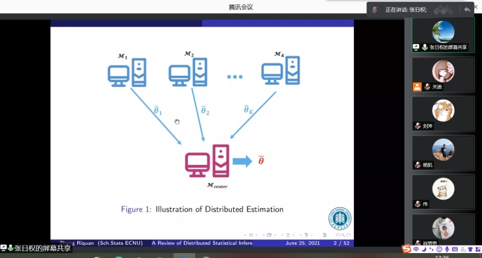 报告会中,华东师范大学张日权教授对处理大规模统计优化问题的相关文献提供一个全面的综述,包括参数模型、非参数模型和其他常用的模型,总结了它们的关键思想和理论性质,讨论了通信成本和估计精度之间的权衡以及其他问题。