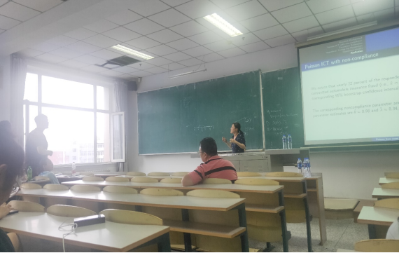报告会中,吴琴博士首先讲解了众所周知的项目计数技术(ICT)及其应用背景,进一步表明该技术将已知比例的独立无害问题列表替换为单个无害计数问题,同时引出项目计数技术(ICT)的天花板和地板效应的缺点。但是,仍存在无论是否存在“不真实”的假设,受访者都会给出“不真实”答案的情况。随后,吴琴博士又向大家教授了解决回答者自我保护行为的问题并提供更可靠的分析模型的定义即泊松项目计数技术。进一步向大家展示了模型的矩估计,极大似然估计以及模型参数问题的解决。最后,吴琴博士向大家了介绍了其仿真研究的结果,可以看出当数据量足够大时该方法的性能很好。并通过一个汽车保险欺诈的实例形象地向大家展示PICT方法。实证使大家对于PICT方法有了更加深入的了解和兴趣。