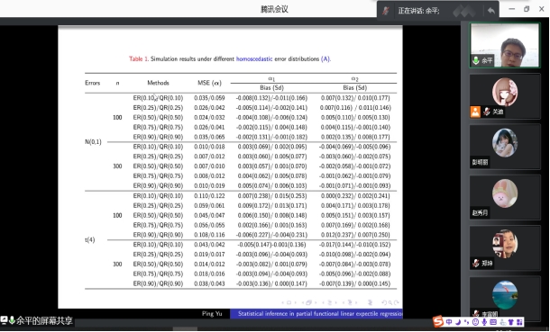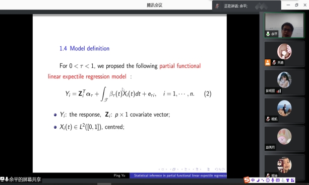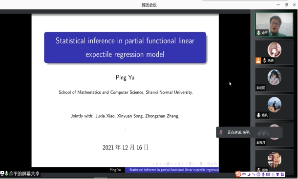 2021年12月16日晚上20:00我院特邀山西师范大学余平教授做线上学术报告,报告由统计系主任杨凯老师主持,十大博彩网站排行榜