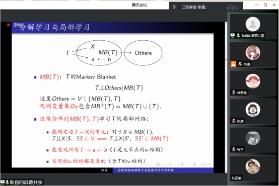 师生深入了解“局部因果网络”相关内容,讨论有关于识别“混杂因素”和“中间变量”的相关问题。此次专题讲座内容丰富,拓宽视野,培养经济学基础深厚、创新能力突出、引领文明进步的数学与统计领军人才和未来大师。
