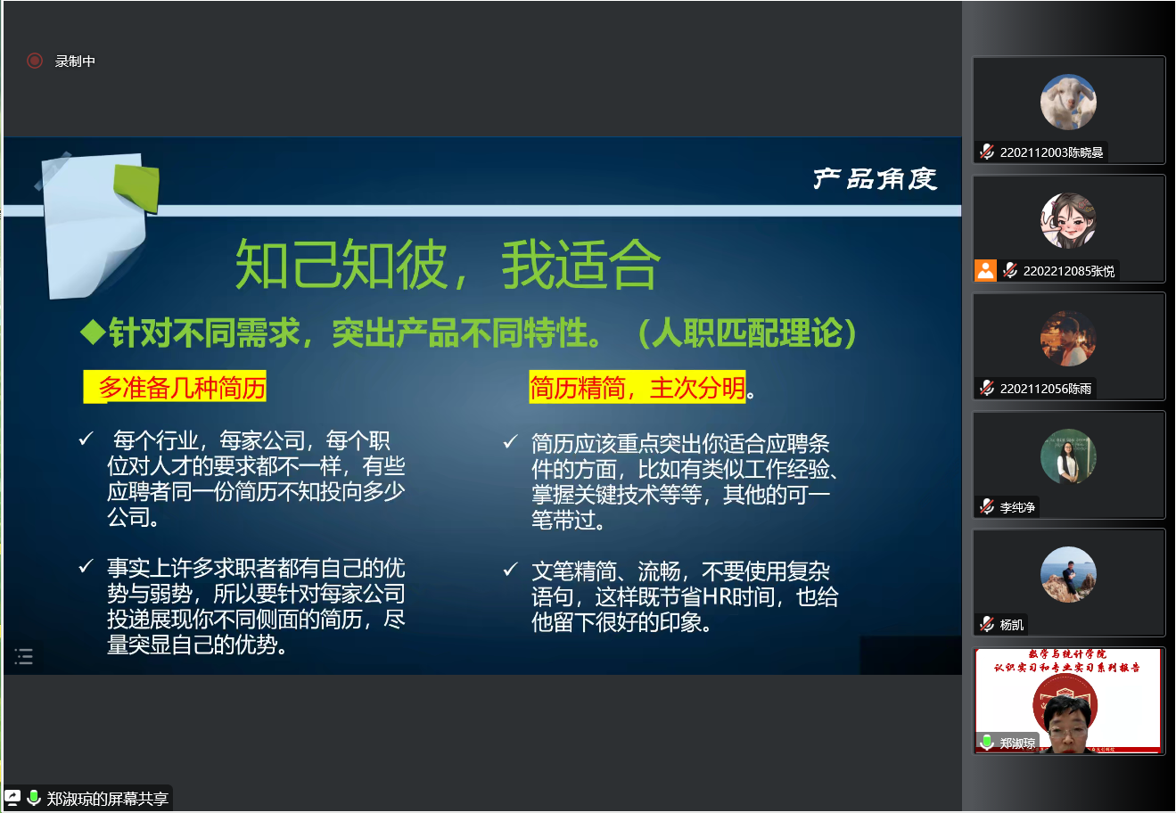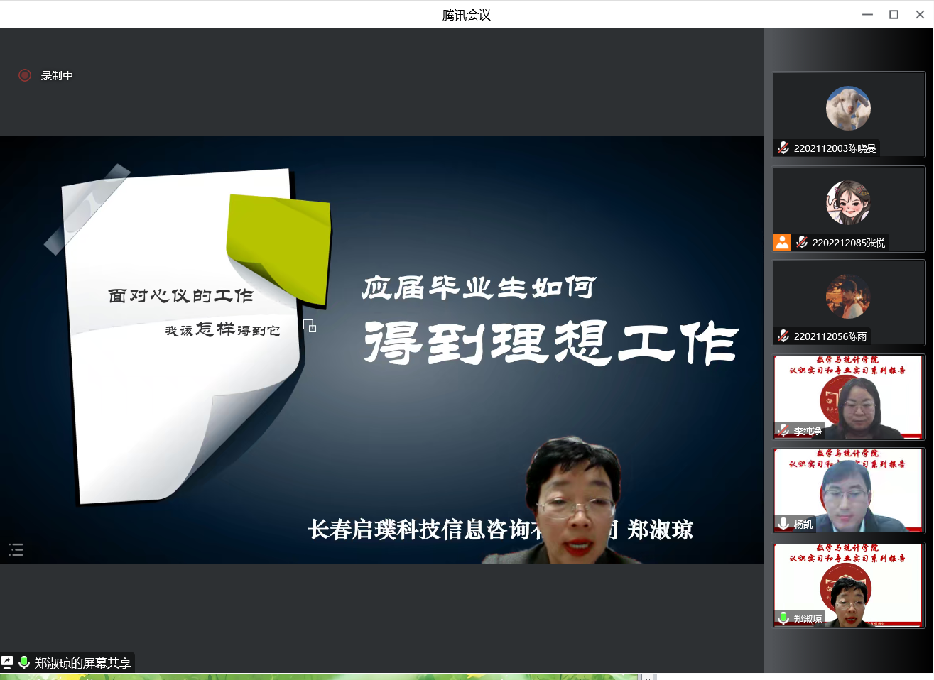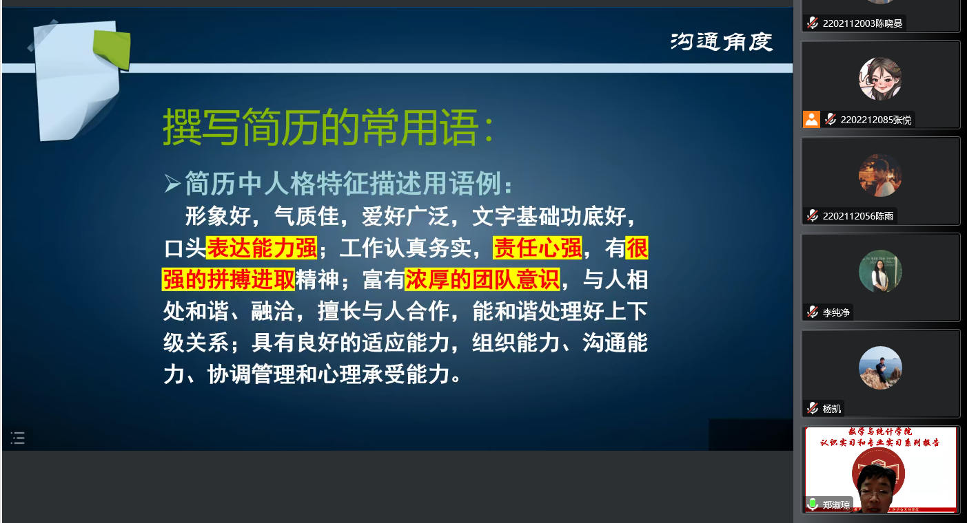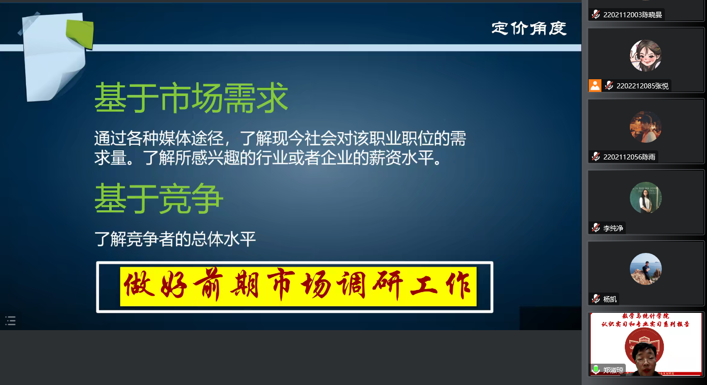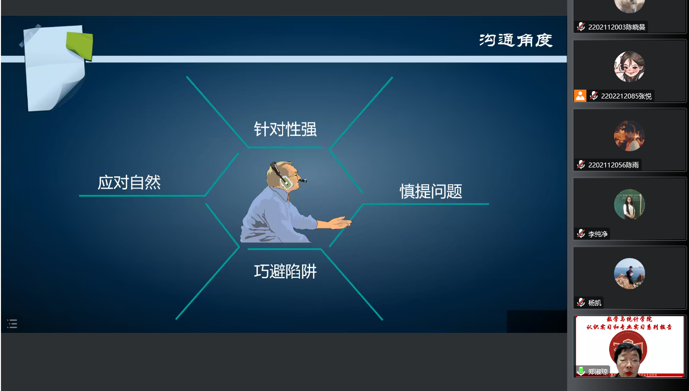 副院长李纯净、统计系支部书记袁晓惠,以及统计系胡茜等青年教师以及2020级、2019级本科生以及研究生参加了本次线上报告。