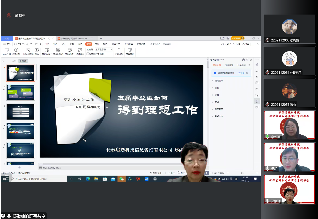 (通讯员:杨凯)2022年12月1日下午16:00,我院邀请长春启璞科技有限公司郑淑琼董事长做题为《应届毕业生应该如何找到理想的工作》的报告。本次报告由十大博彩网站排行榜