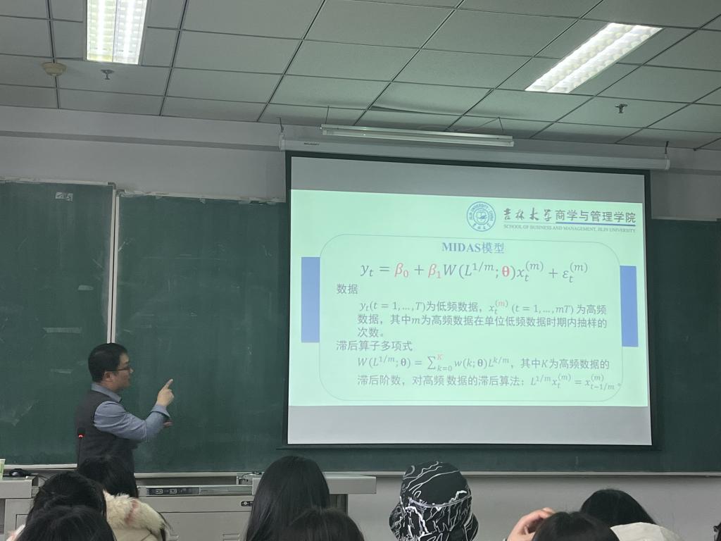 报告会结束后,大家针对混频数据建模产生了浓厚的兴趣,老师及同学向刘汉教授踊跃提问交流,其中韩教授针对同学提出的关于MIDAS模型的问题做出耐心解答,拓展了老师和同学们的学术视野,激发了同学们的学习热情,使老师和同学们对混频数据建模等有了更深的理解,与会师生都表示受益匪浅。