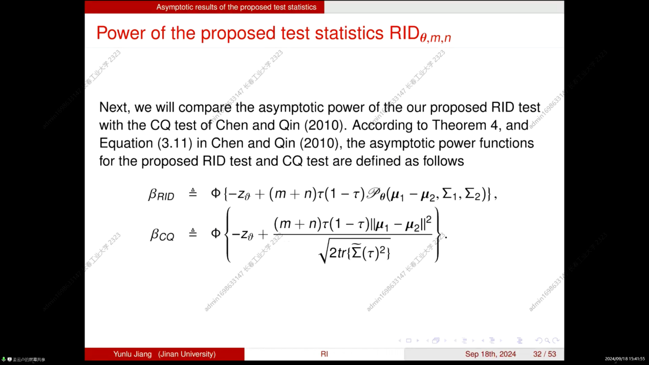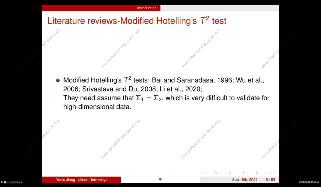 姜云卢教授就检验两个样本的均值是否相等,开发了一个框架,该框架包括并扩展了许多现有的方法,特别是在高维设置中,而不限制相同的协方差矩阵或稀疏性。在一般的多元模型下,我们可以推导出所提出的检验统计量的渐近性质,而无需明确指定数据维数与样本量之间的关系。具体来说,新的框架允许我们更好地理解测试的属性,并相应地选择一个功能强大的过程。例如,我们证明了当真实均值差中的非零信号具有几乎相同的符号的弱密集时,我们提出的测试可以实现1的幂。