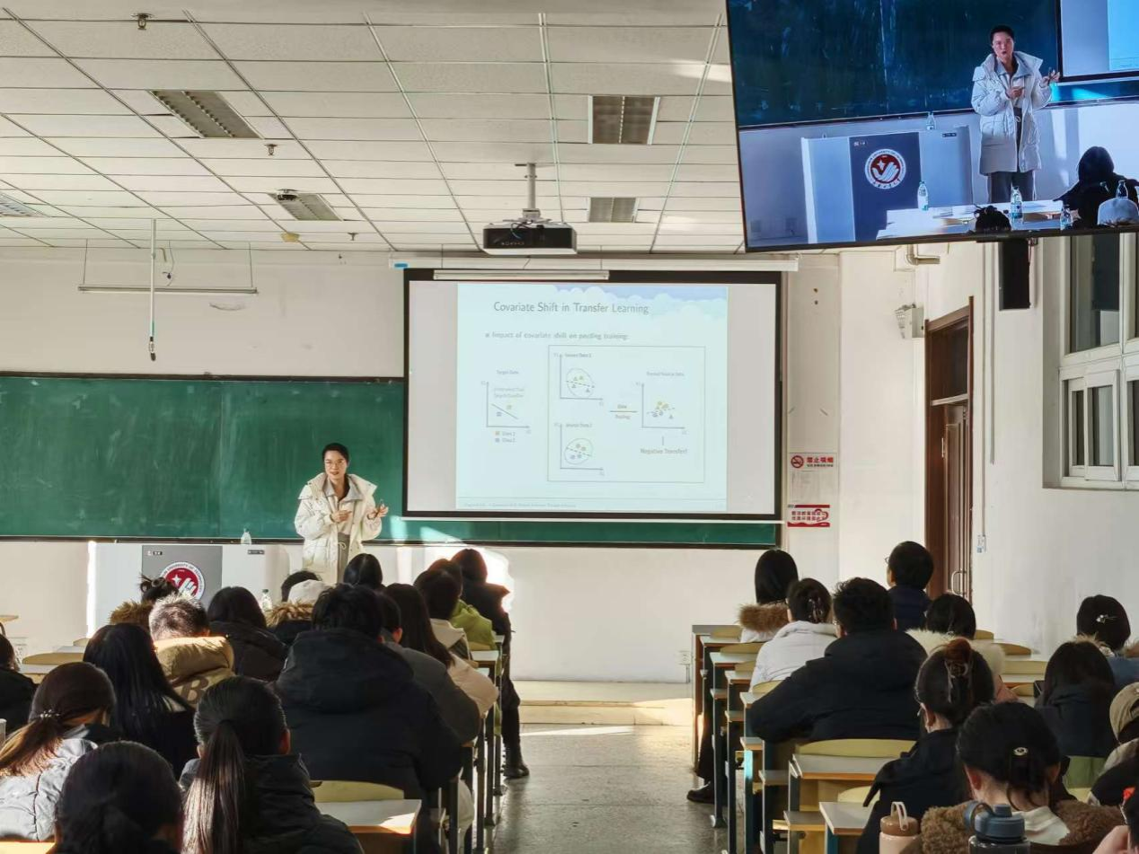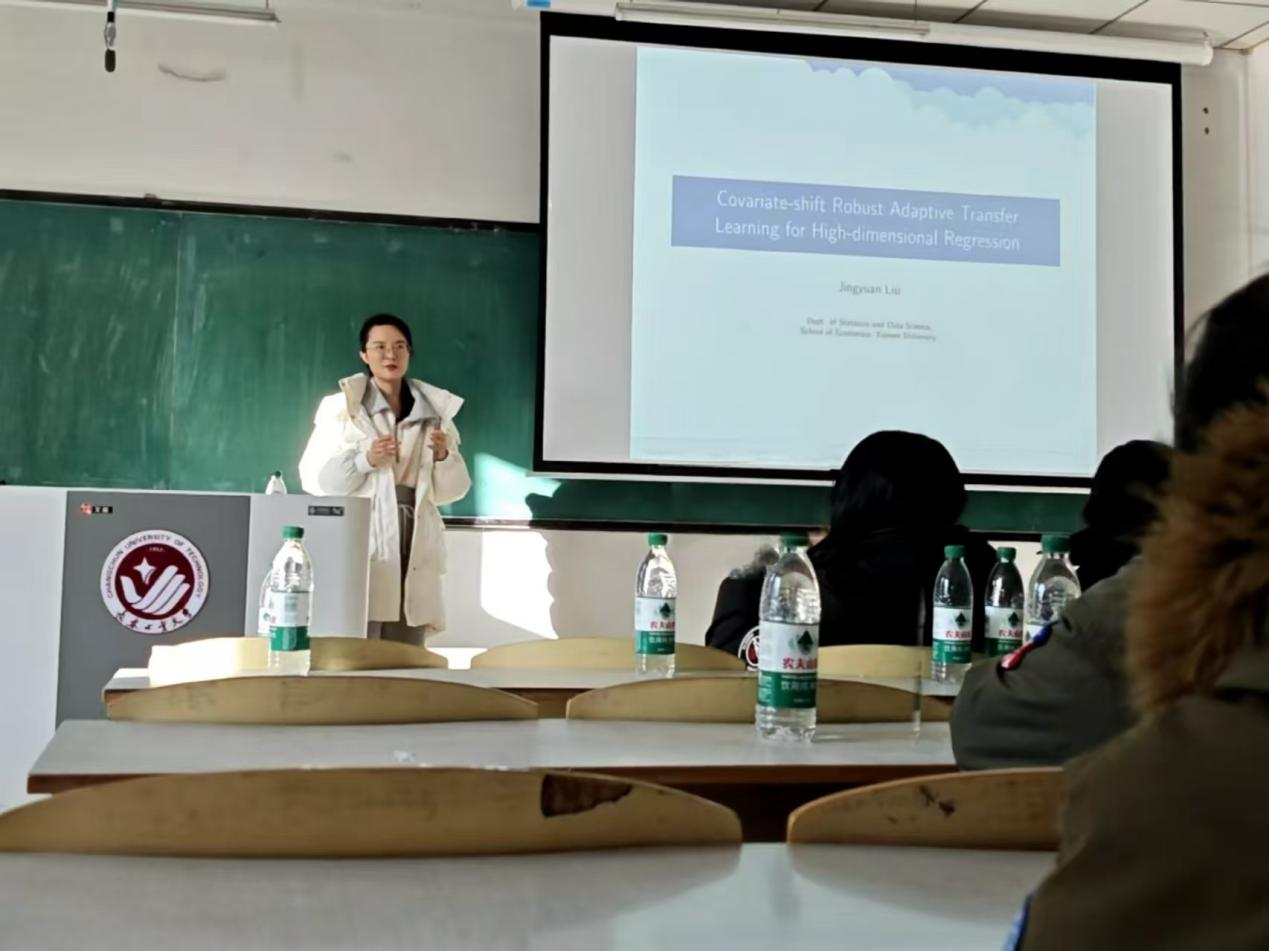 在接下来的报告中,刘教授讲述了从迁移学习中的基本概念和问题出发,引出研究的背景和动机,强调处理协变量偏移和探索特征可迁移结构的重要性;并详细阐述为解决在高维回归设定下应对存在协变量偏移时的模型偏移问题所提出的方法(自适应迁移学习),包括 TransFusion、D - TransFusion 和 AdaTrans 的具体原理、步骤及理论依据,逐步深入分析如何实现对高维协变量偏移的稳健性和对可迁移结构的自适应处理。