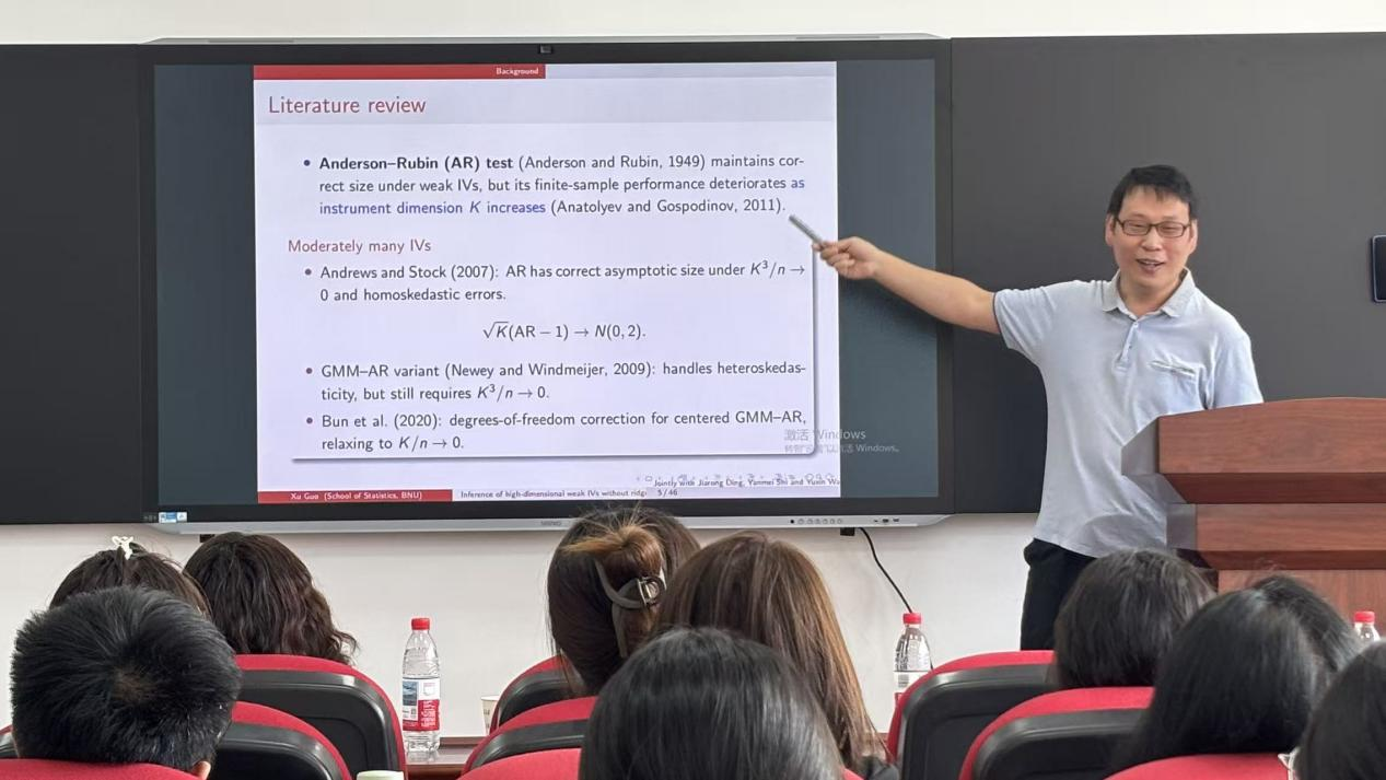 本次报告,郭旭教授团队提出了三大核心方法,包括改进的Jackknifed AR检验(JAR检验),该方法消除了对岭正则化的依赖并显著提升了计算效率,改进的最大型检验(BCCH_Asy检验)修正了Belloni等方法的保守临界值并首次推导出精确的Gumbel渐近分布,以及Fisher组合检验通过证明JAR与最大型统计量的渐近独立性并采用Fisher方法合并p值,实现了对未知稀疏/密集工具变量结构的自适应,在理论层面,团队证明了JAR统计量在零假设下的标准正态收敛性,建立了局部备择假设下的功效分析,突破了传统工具变量维度K随样本量n增长至无穷的限制,推导了最大型统计量的精确渐近分布,并首次严格证明了两类统计量的渐近独立性,在模拟研究中,团队设计了对比实验,结果显示JAR检验计算速度较RJAR提升200-300倍,Fisher组合检验在稀疏/密集场景下均保持最优功效,改进的BCCH_Asy临界值使检验功效提升15%-20%,在移民工资差异的实证应用中,新方法使置信区间精度提升40%-60%,该研究首创了无需正则化的高维弱工具变量推断框架,开发了计算复杂度O(K²)的快速算法,突破了K<n的传统维度限制,建立了工具变量稀疏性未知场景的普适理论,为劳动经济学、流行病学研究提供了新工具,在COVID-19疫苗有效性评估等领域具有重要应用潜力。