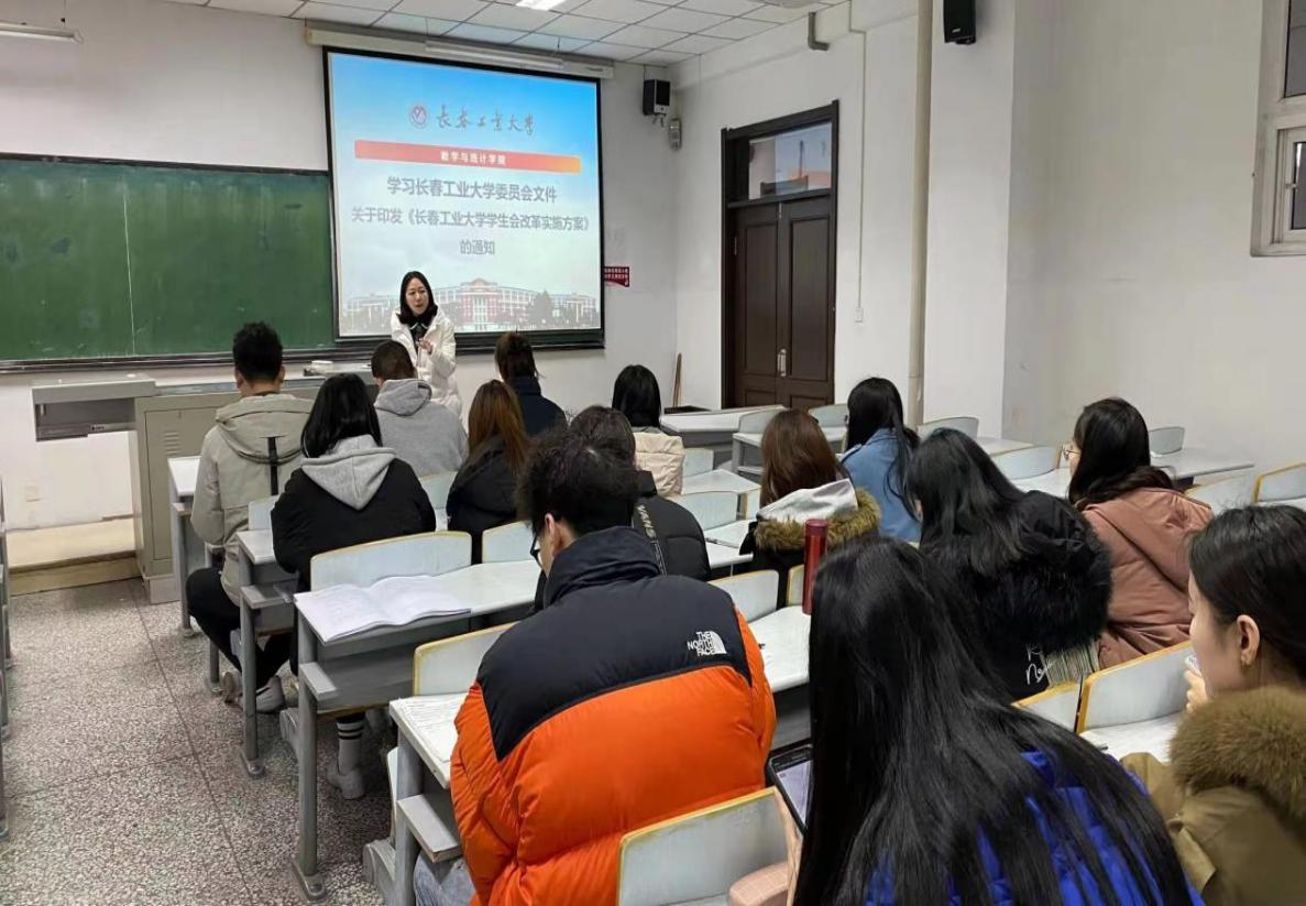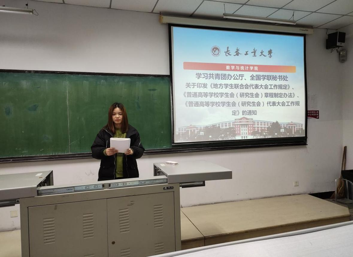 会议开始由应艳老师带领同学们学习了《长春工业大学学生会改革实施方案》,她指出该方案旨在加强和改进我校学生会各项工作和建设,推进我校学生会改革创新。明确了以下几点: 一是明晰职能定位。学生会以习近平新时代中国特色社会主义思想为指导,以加强对同学的政治引领为根本,以全心全意服务同学为宗旨,从同学中来、到同学中去,听取、收集同学在学业发展、身心健康、社会融入、权益维护等方面的普遍需求和现实困难,及时反馈学校,帮助有效解决。二是改革运行机制。学生会组织架构一般为“主席团+工作部门”模式。实行主席团轮值制度,学生会主席团集体负责学生会重大事项,设执行主席,执行主席由主席团成员轮值担任,执行主席负责召集会议、牵头日常工作。三是精简组织机构。学生会组织遵循按需设置、合理优化。学生会设置秘书处、学研部、宣传部、权益部、生活部、文体部等六个部门。四是健全考评制度。学生会工作人员应当是学有余力、学业优良的学生,学习成绩综合排名在本专业前30%以内。每学期开展一次评议会,并综合评定等级。对于无法正常完成学业的、考核不合格的、违法违纪的以及其他无法正常履行职责的学生干部,按照规定和程序予以劝退、免职或罢免。