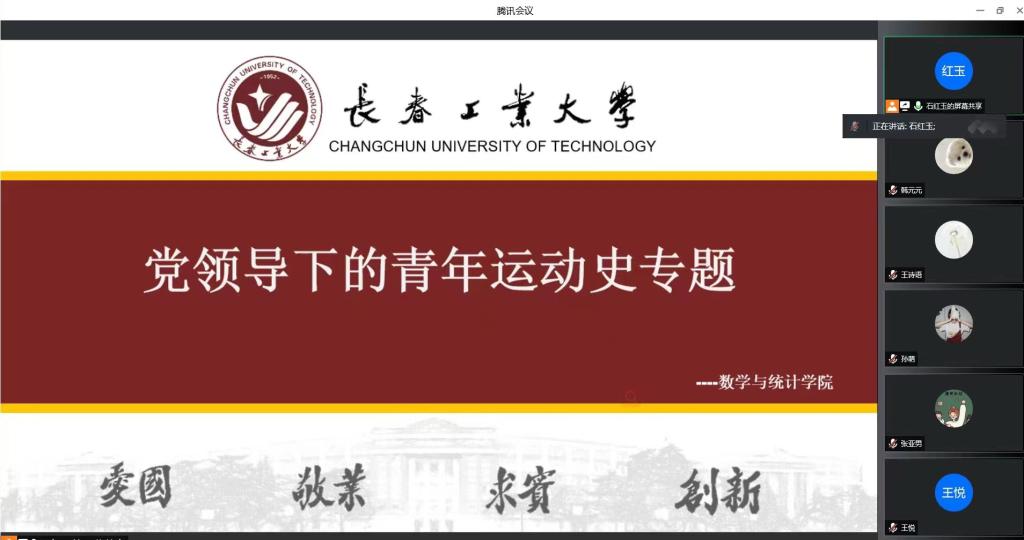 研究生会学研部孙萌带领同学们学习“党领导下的中国青年运动史”专题学习部分。会议强调,坚持党的领导是中国青年运动蓬勃发展的根本保证。一部中国青年运动史,就是一部广大青年在党的领导下不懈奋斗的历史。只有坚持中国共产党的领导,广大青年才能健康成长,中国青年运动才能沿着正确道路蓬勃发展。100年来,我们党始终高度重视青年、关怀青年、信任青年,团结带领一代又一代青年为实现中华民族伟大复兴的中国梦接续奋斗,推动中国青年运动始终与国家同呼吸、与人民共命运,书写了百年党史中闪光的青春篇章。