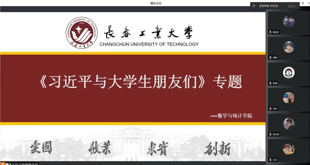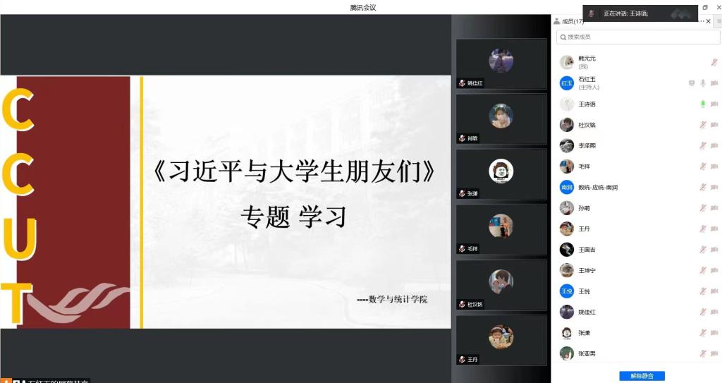 研究生会学研部王诗语带领同学们学习《习近平与大学生朋友们》专题学习部分。会议指出,30多年间,习近平同志的工作职务不断变化,但他对青年特别是对大学生的重视关怀始终如一。凡是与习近平同志有过接触的大学生,对当时交往的情景莫不记忆犹新:他是不打官腔的领导,讲话坦诚、睿智,幽默、平和。习近平同志对青年始终寄予热切的期望,无论工作多么繁忙,他总要抽出时间给大学生写信,到学校看望大学生,与学生们座谈,为师生作报告,谈学习、谈工作、谈生活、谈形势、谈未来,大学生们在他身上却从来看不出一点儿官架子,他总是那样平易近人,热情坦诚。