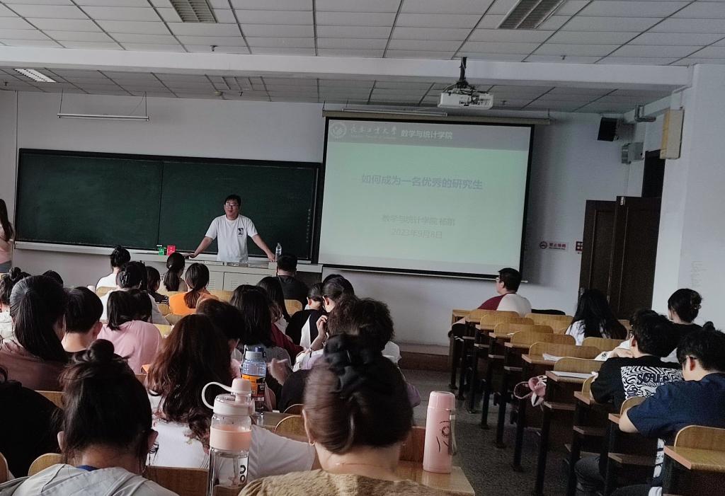 的历史沿革、学科发展情况、人才培养政策。他从阐述自知、自律、自塑和自信这四个方面,帮助学生们答疑解惑,以昂扬之姿面对接下来的学习生活。他强调,研究生生活一是要清楚自知,严格自律。要明确自己的学习能力和执行力,培养规律的作息,合理安排时间、分配精力,珍惜闲暇、零碎的时间,今日事今日毕。二是作为一名新时代研究生要做到坚定自信,自塑己身。要认真阅读相关学术文献,积累经验和知识,耐心研学,不畏难、不逃避、不虚度三年的宝贵时光。