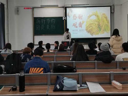 一颗一粒,皆是汗水浇灌,一饮一食,当思来之不易。各团支部通过会议的方式召开此次团日活动,向同学们节约粮食的重要性,鼓励同学们践行光盘行动,并给出节约粮食建议。同学们对“节约”话题畅所欲言,并发表自己的想法。190801班班团支书张越倡议大家积极参加“光盘”行动,争做勤俭节约的践行者、宣传者、监督者、推动者。200804班团支书张蓝月表示会在今后的生活中以身作则,自觉把勤俭节约、艰苦奋斗的优良传统传承下去,内化于心、外化于行,从现在做起,从身边点滴做起,将口号变为行动,使节约变成一种习惯,让勤俭成为一种美德。
