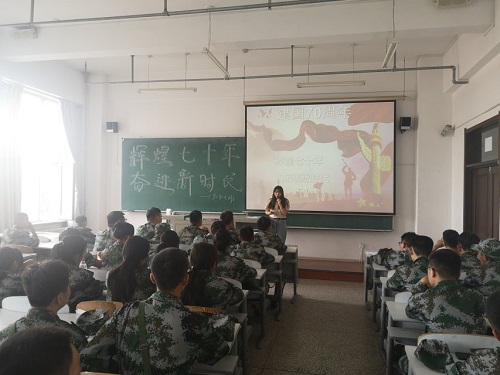 于9月5日8时在教图楼111室开展了“辉煌七十年,奋进新时代”主题团课教育活动。本次活动由180802班团支书张宁馨主持,全体大一新生均参与活动。