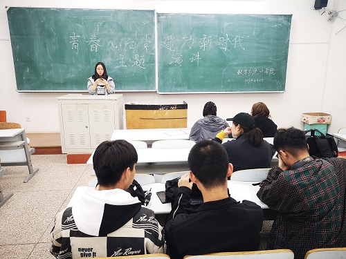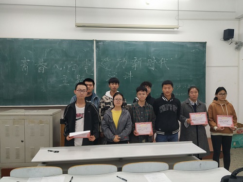 于2019年4月21日晚6点在教图楼609教室成功开展了以“青春心向党,建功新时代”的主题演讲活动。此次演讲比赛共9名同学参加,由团委副书记崔仕贤、组织部部长施金状、组织部副部长林思扬和盖梦琳、170801班班长虎佳尧担任评委。