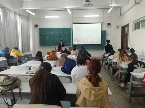 团委在2017级两个班级开展以“引领明德风尚,传承民族灵魂”为主题的团会。