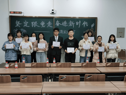 于2020年11月16日在北湖东区主楼224教室举行“坚定跟党走,奋进新时代”主题演讲比赛。王一、李佳彬、桑瑞敏、段富山等11名2020、2019级学生参加此次活动,2020级段富山和宋雅瑞主持。