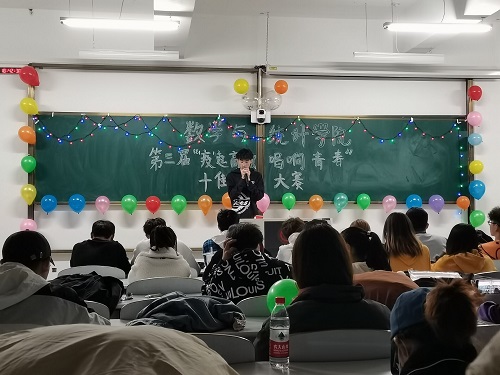 于2020年11月13日在北湖校区东区的艺术楼515教室举办“‘疫’起高歌,唱响青春”院十佳歌手比赛,此次比赛由院团委宣传部文化培育服务中心承办,2020级11名同学作为选手参加了此次比赛,冯盈绮、薛梦瑶担任比赛主持人。