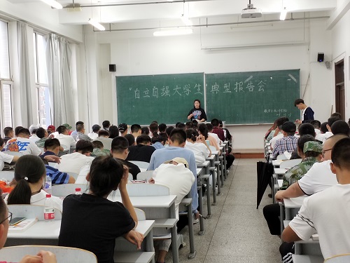 在林园校区教图楼111教室举办了自立自强大学生典型报告会。此次会议由团委组织部副部长盖梦琳主持,大一全体同学参加了此次报告会。