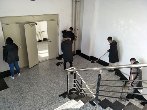 团委社会实践部及多名大学生志愿者们在校园教图楼的公共区开展“美化校园,从我做起”志愿者服务活动。