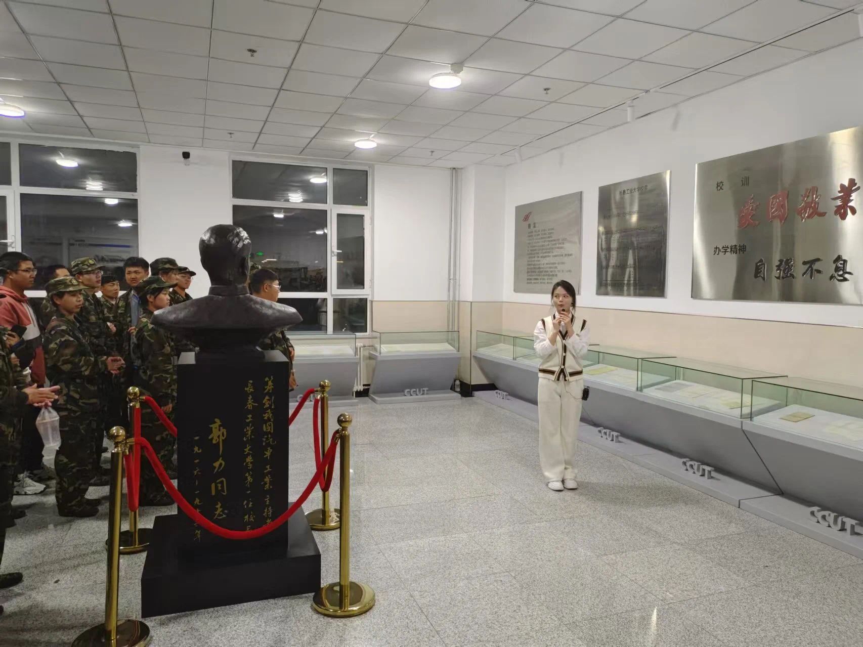新生们在讲解员的带领下,认真倾听着那些老照片、老物件背后的故事,感受着长春工业大学的发展变迁和办学成果。