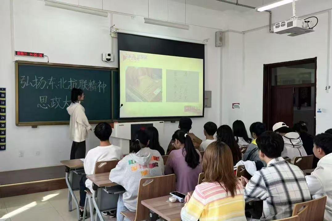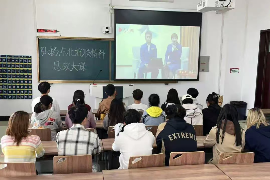 组织部分学生于2024年9月25日下午2点在北湖东区120教室观看了“弘扬东北抗联精神”思政大课。