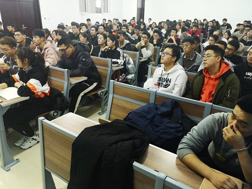 于2019年12月4日在北湖东区教学主楼446教室和452教室,分别举办了两场专业教师指导学业报告会,报告会由应用数学系主任刘铭,统计系主任李纯净主讲,2017届,2018届和2019届全体学生参加本次报告会。