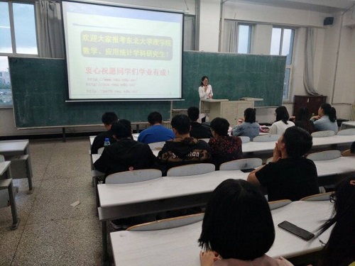 陈艳利教授首先全面分析了本科生与研究生在数学学科的巨大差距并解答了大家对于考研方面的疑虑。陈教授提到,本科阶段数学知识不够细致,很多知识可以在研究生阶段得到细致入微的升华。教授建议大家提前在就业与读研中做出选择并为此准备。最后,教授介绍了东北大学的概况与该校数学系目前的研究方向与一些研究项目并鼓励大家攻读东北大学的硕士学位。