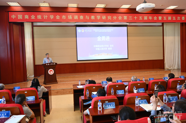 金勇进教授在致词中对市场调查与教学研究分会第三十五届年会暨五届五次委员会的召开表示热烈祝贺,对我校统计学学科的建设发展表示高度肯定,希望各位专家学者在此次年会上,分享宝贵的研究成果,交流前沿的学术思想,探讨市场调查的新方法、新技术,推动学科建设和人才培养迈上新的台阶。