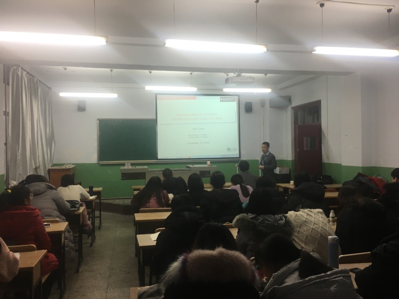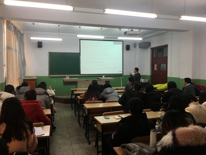 报告会中,朱文圣教授从以一些医学实例引出报告的主题,其中数据基于随机化而来的,研究的是对于不同的人给出不同治疗方案,运用动态治疗方案(一系列决策规则),主要针对的目标给出最优的治疗方案,并对条件期望进行建立线性模型,其关心的是治疗的差别,给出一些定理以及定理证明。之后,在理论的基础上,朱文圣给出了数据的模拟,用以说明理论的应用。最后,朱文圣老师对同学们提出的问题进行了详细的解答,也与十大博彩网站排行榜