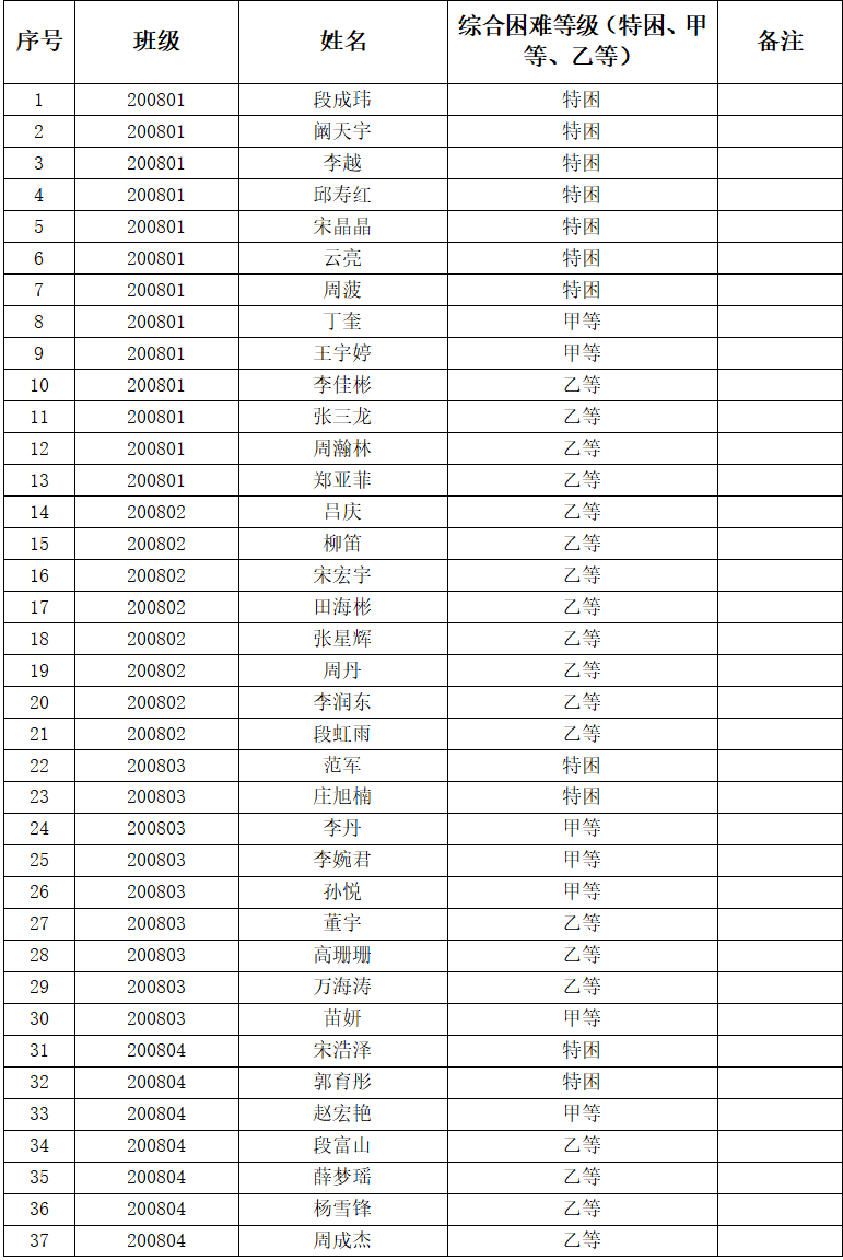 明确认定范围,困难等级,认定标准,认定程序;按照国家文件规定,脱贫家庭学生(原建档立卡贫困家庭学生)、脱贫不稳定家庭学生、边缘易致贫家庭学生、突发严重困难家庭学生、城乡低保家庭学生、特困救助供养学生、家庭经济困难残疾学生和孤儿这8类学生必须被经济困难认定全覆盖;对2020、2021、2022级家庭经济困难学生进行摸排,将家庭经济状况好转的学生从困难生名单中去除,个别学生自愿放弃经济困难认定资格,将家庭因各类突发情况导致的经济困难学生增补。经本人申请,班级民主评议,班级评议小组初评,在班级公示1天后上报十大博彩网站排行榜