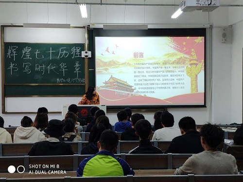 于2019年10月23日下午在主楼446教室开展了“学习筑梦”系列活动之“辉煌七十历程,书写时代华章”主题团会。本次活动由180802班团支书张宁馨主持,大一、大二全体团支部委员参加本次活动。