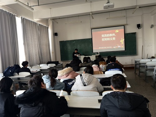 在长春工业大学林园校区教图楼613教室组织了2018年第六期党课理论培训。本次培训由学生会主席马壮主讲,院本科和研究生的21名入党积极分子参加本次党课学习。